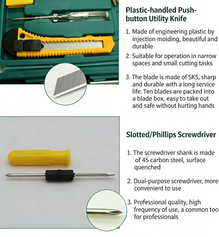| 颜色/套装选项 | ❤️【家居必备】9件套工具套装 ❤️经济型25件套【日常保养】 ❤️经济型26件套【日常维修】 ❤️经理推荐…… |